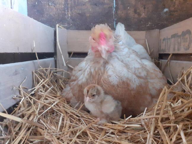 Poulet/Huhn Wir züchten unsere eigenen Hühner. Die männlichen Küken dürfen im Stall mit großem Auslauf aufwachsen und die Hennen legen in der Hühnergruppe Eier. Auch sie haben Zugang zum grünen Freien. Bei unserem Geflügel setzen wir auf Futter ohne Kokzidiostatikum. Alte Hühner werden ebenfalls geschlachtet und können bei uns als Suppenhuhn gekauft werden.